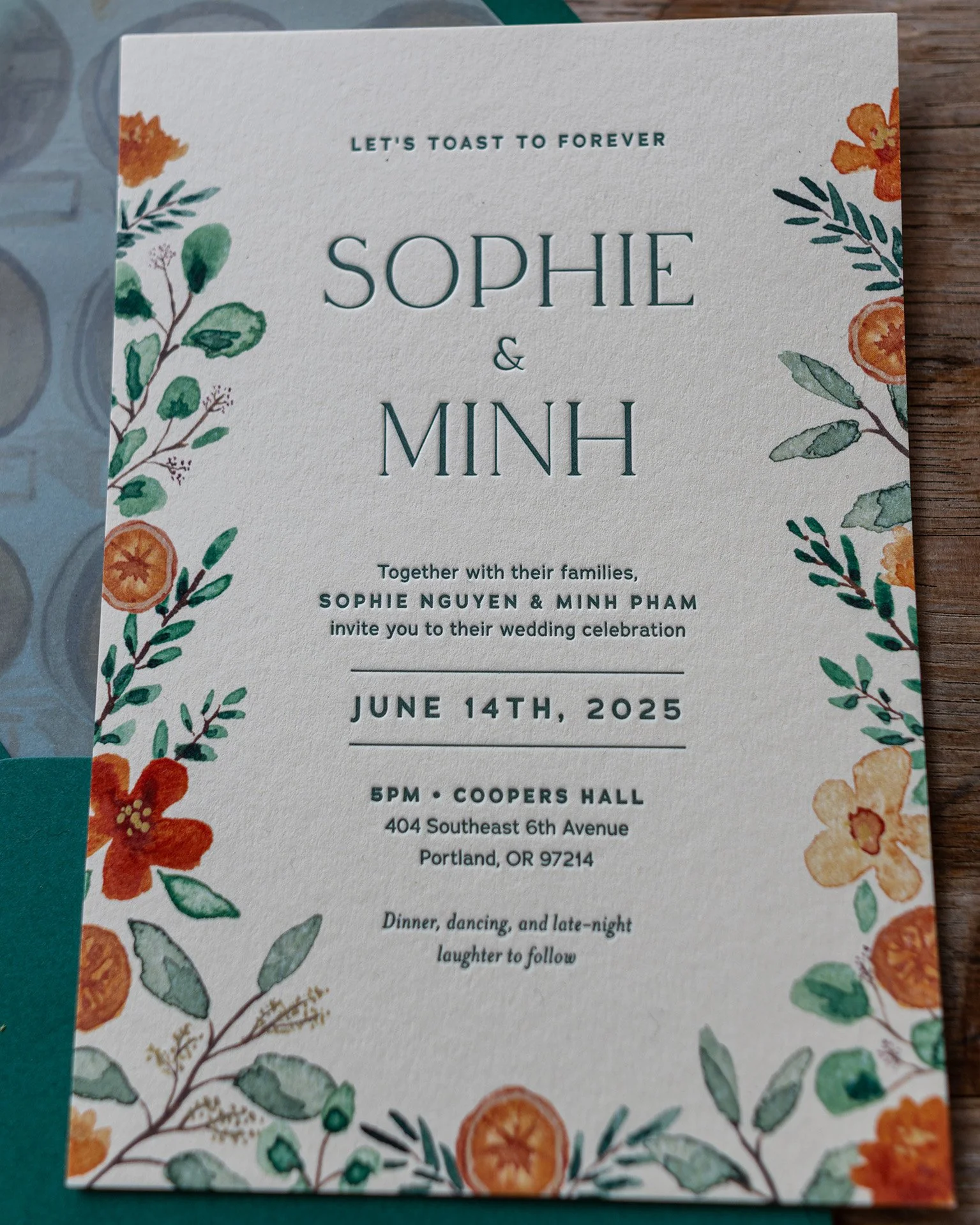 A beautiful textural experience for guests to feel the indentation of the text on the paper.